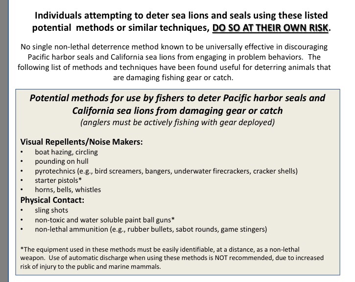 So I wonder *who-trumps-who* in court, The U.S. Marine Mammal Protection Act (MMPA) or U.S. Department of commerce ? Who cares....I say carry a sharp stick, big knife, fishbat er' whatever and protect yourself, your YT and your Yak. Haze the seals with a FOX40 Whistle....AMAZINGLY LOUD. Blast that dude in the face...hahhahah |