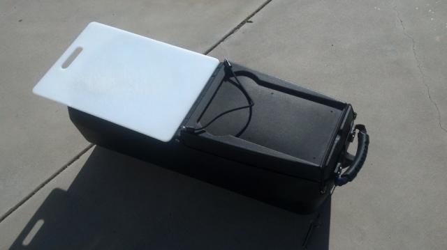 The Tackle Pod in the "Prep" stage of the modification. At this point most of the necessary holes had been drilled. http://i481.photobucket.com/albums/r...g?t=1424759408 Top view of the Tackle Pod in the "Prep" stage. The holes for the modified wooden cutting board will be drilled next. http://i481.photobucket.com/albums/r...e.jpg~original |