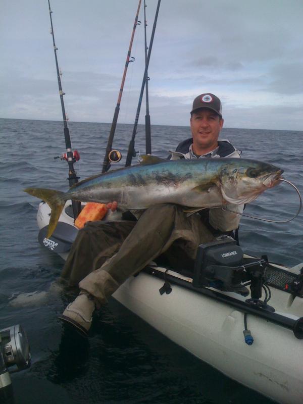 Everything is nice amigo Josh, Yellowtail, fishfinder, shoes, new Revolution or I'm color blind..? It looks like a 28 ponder or bigger? Well, hoping to see ya soon out there.