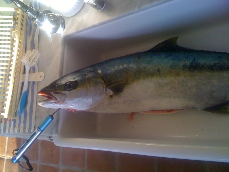<O:pBait was super tuff to make, only managed two pieces, so was super stoked when Jeremiah peddled over to offer me a few of what little he had. As solid a fisherman as they come. The magic hour was about to begin so the three of us that were out set up our drifts……. Nothing, started to drizzle, then. BOOMSHAKALAKA! <O:pBait inhaled at warp speed. Wait for it, wait for it, click goes Saltist into gear and the Calstar b/t 670 loads up like a dream. Head shakes ensue, I get sloppy and spread my legs like a politician. Then I begin to stress over my knots and lighter line that I tied on that morning, then I really begin to stress as I look over my shoulder and see how close I am to the lobster buoy. No matter though, it was destined to be. Stoked, a birthday present from the crown Jewel herself. Attachment 5317 I was waiting for my wife to flip when she came home and saw this in her new sink. Attachment 5318 But the only thing she said was "When's white seabass season? You know how I loooooove white seabass":doh: |
