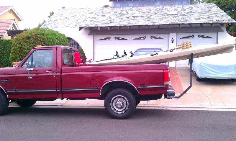Anyway it was nice getting out and using my kayak that Ive had for like a month. Never had a way to transport it easily to the beach but I just got a job at a welding shop off lake forest and we made a little rack for my truck so I could take it out. Its a prototype and I still have another addition I need to make to it but it worked great. I can keep my tailgate closed so my rods etc wont go flying out. I had to put a chair under the front but I will be adding another piece to the bed soon so it wont be so ghetto fabulous! Attachment 6755 |