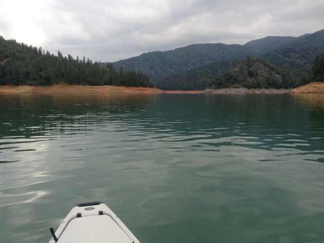 After getting blown out of the Sacramento delta with 30-40 mph winds, I continued up to Shasta Lake to fish trout and Kokanee. No luck on the trout so far, but the Pitt Arm is more known for the bass. Seems like the whole place is full of these 11 - 12 inches. They put on a fun fight.