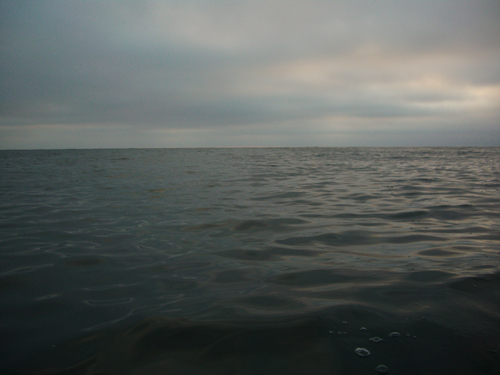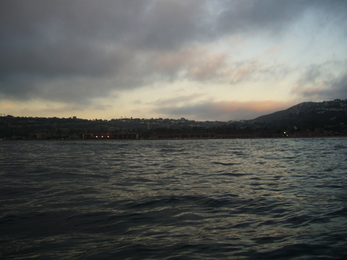 Surf had a little thump on it. 3fters but it was timed right for a dry 4:00pm launch. Cross swell past the buoy. Water was wierd-hard to explain, current was pulling North, bit of salad on the surface. Birds working. Seals working. Dark out.