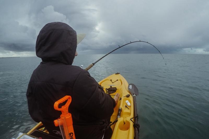 Had the day off today and the rain was not stopping me. Launched in completely flat waves in North County. Saw two groups of about 40-50 birds diving a good 3/4 mile out of the patties but I didn't have my iron and didn't feel like peddling that far haha. Went to my favorite reef and started casting. First cast and I got a fish, good sign. Turned out to be a steady picking of Calico hitting the Warbaits x MC viejo 5" combo. Ended with 12 fish all catch and release of course. Only had about 1 1/2 hours to fish before the wind realllly started blowing!