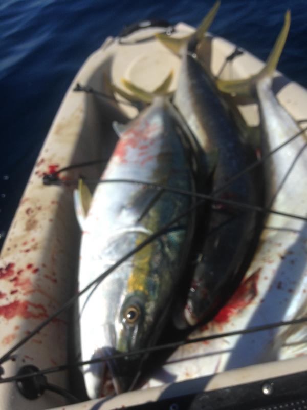 The bite was hot! Fish were shallow and it seemed like everyone was within 300 yards of each other all day. And half the group had a fish on the entire time it seemed like! I landed 5 yellowtail today. After my 3rd, I ran out of bait. I threw the surface iron for a few casts and hooked another one. I released this one which was probably 8-9 pounds to let him get big and strong. After this, I caught a 4 more macks for bait. The first 3 macks got eaten by seals. When I had my last bait out, a whale started breaching like crazy. Pretty much everyone fishing started watching it. I was watching it and eating a snack when my clicker started screaming. This YT tangled in kelp so it took me 30 minutes to get him in. I'm going to try to keep heading out every weekend, but I'm probably going to release the YT from now on because I have so much meat in my freezer. Plenty to last me the off season. Attachment 16946 |
