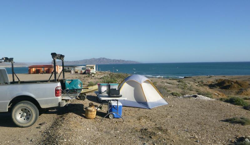I took a little trip to the Bahia Tortuga area this week for a few days of camping and fishing. I camped in a small fish camp called Punta Quebrada which is about half way between Bahia Tortuga and Punta Eugenia. Excellent sedan type road into the area and a nice protected launch point. I got there on Monday afternoon after a non hurried 3.5 hour trip from Asuncion. Set up camp and prepared for and early morning launch.