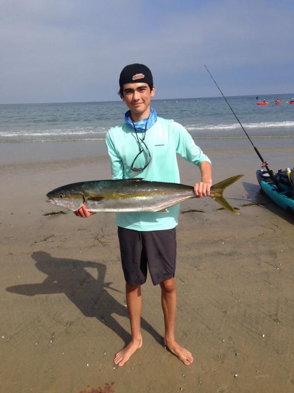 Got out on the water at 6 ish. Bait was a pain at first but shortly found some sardines and mackerel. Used the sabiki and caught roughly 6 and began trolling. 10-15 mins into trolling and something slams my bait. I reeled it up from the depths and it was a big yellowtail. Gaffed em and got em into the boat without a problem. Got blood all over my boat and put it in my game bag. Overall a fun day at LJ and my first ever yellowtail. Attachment 21906Attachment 21907