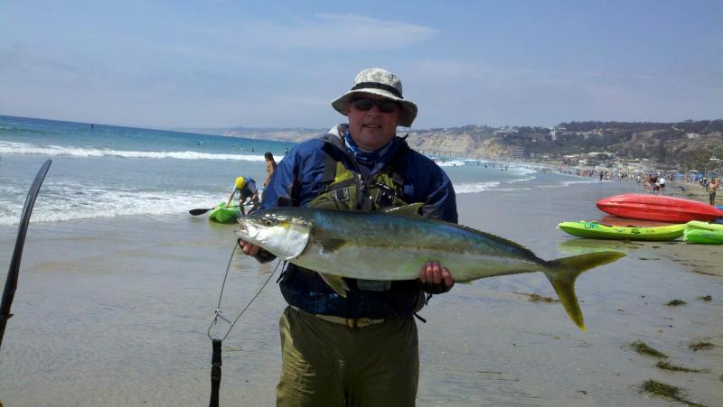 I dragged some sardines around for awhile and got discouraged. Told my new friend I'd see him later and headed for deeper water. In about 90 feet of water, something hit a trolled sardine and took me for a ride. I fought it for around 40 minutes and couldn't get it closer than 38 ft from the yak according to the fishfider, at which time it would head straight back to the bottom. I was taking my time, did have the drag really tight and keeping a lot of pressure on the fish. I thought the dry spell was over. Not! The hook came unbuttoned. What a terrible feeling. I then continued to deeper water with more trolled sardines and decided to drift back to shore and call it a day. Caught an 18.5 in calico on the troll and released it. After a sea lion robbed me of my last dine I went to play around in the kelp for awhile. I tied off to a stringer and was tossing some plastics. After about half an hour the water erupted around me with about 20 crashing fish and birds diving everywhere. I thought it was a school of barries. I tied on a jig and tossed it out. They weren't barries. I got a nice yellowtail 39 inch fork length. Funny thing, it was on my plastics rod which was spooled with mono, no braid or fluoro. Hmmm...Attachment 9333 Attachment 9334 |