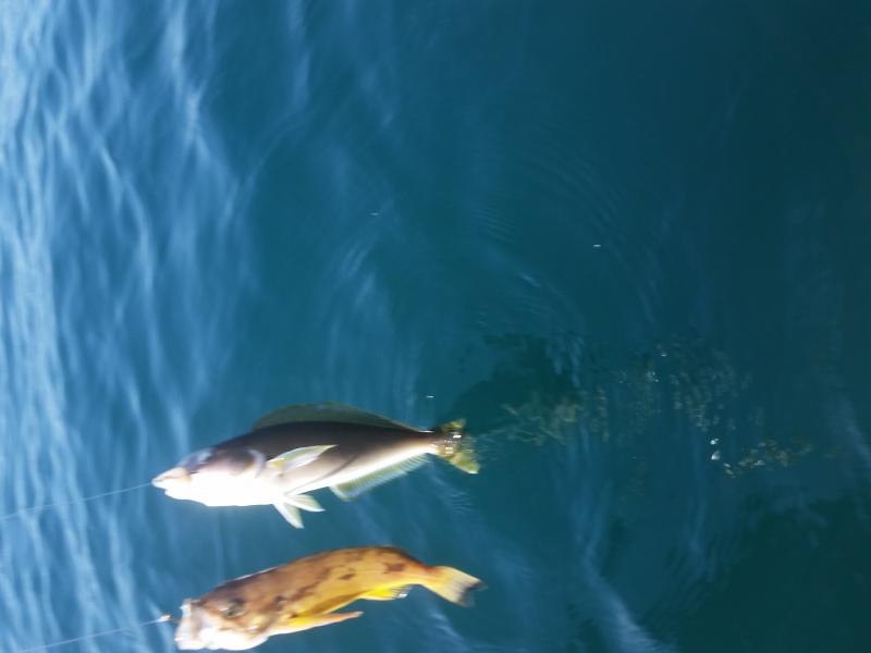 I went on 4/11, kinda last minute decision, Mike text me Thursday asking if I wanted to go and I sure did after not fishing for a few weeks. Unfortunately my battery was shot, so basically fishing blind except for Mikes Lowrance x-4. No love on the fly line, caught mainly Spanish, only one green. After a while Mike, asked Russ and I if we wanted to drop some squid. So we did, and for a few hours we had a fairly endless supply of rockfish (coppers, reds, salmon grouper, and Tons of whitefish). We threw a bunch back since they were pretty small rockfish. I changed my live bait rig to a slide sinker and dropped it down about 20 feet of the bottom, it went heavy and ended up being a nice lingcod tangled, not hooked, with my bait, got a few pics, and he spazzed out, freed himself and swam away. Bummer. Then rockfish bite died. Had another bait near the bottom, and then went bendo around 1pm, on the right kind. Locked down drag on the old jigmaster and just couldn't gain line. After 30 minutes, he popped off, second heart break of the day. Line intact, hooks not bent, knots just fine. He just popped off I guess. Need a live bait reel with more power, damn jigmaster, lol. Good times overall though! Here's a few pics. Good times Mike&Russ! [ATTACH]15199[/ATTACHAttachment 15206]Attachment 15200Attachment 15201Attachment 15202Attachment 15203Attachment 15204