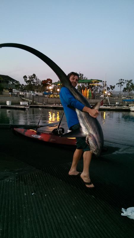 Went out of Dana Point harbor for afternoon session on Monday. Launched around 3. Paddled to the point. About 1 1/2 miles out, I hooked into this guy at 5:45 and got to the kayak about 7:15. Ended up about 2 1/2 miles out. Another 30 min of wrestling and finally got him on board.