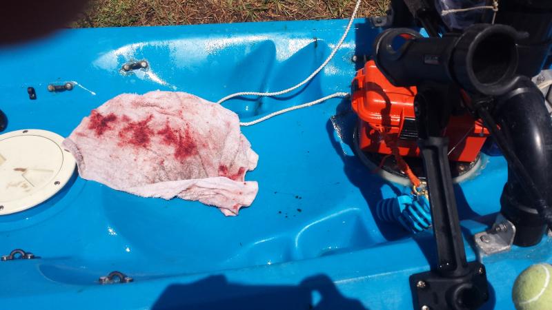 I thought gutting my fish in the kelp beds would be safer than open water that's funny when the hammer head follows me into waste deep water before backing off I better start taking my Chile dipper or as some of you no it as the bat....gaff