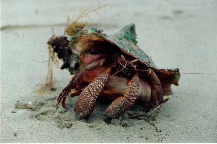 Hermit crabs often live in these kinds of shells. In some parts of the world they get pretty big. I caught this guy in the Caribbean a few years ago. The shell is a large conch nearly 12 inches in length. The crab living inside was the size of a small lobster.