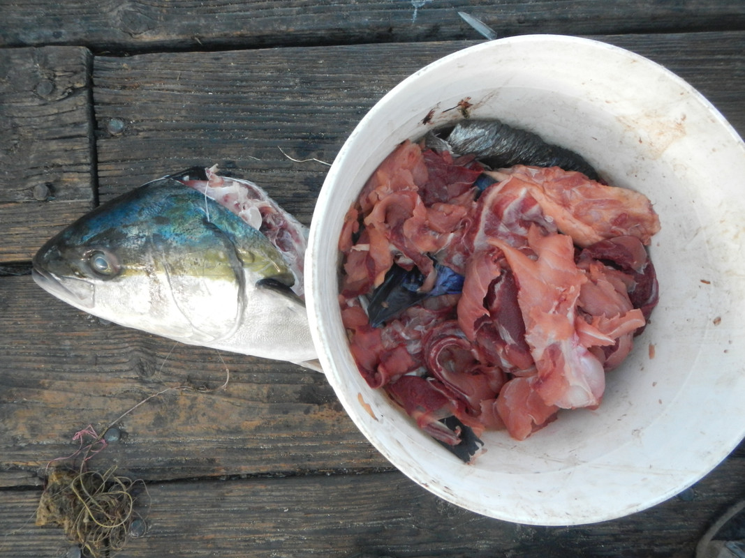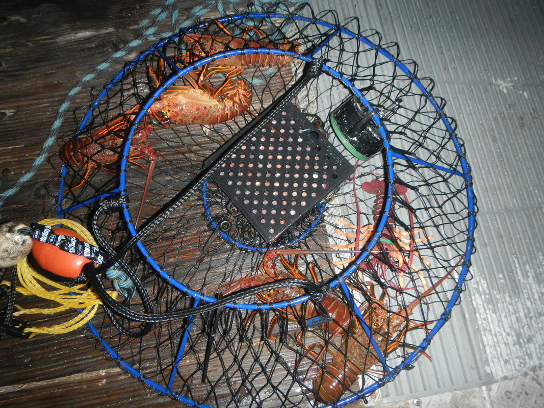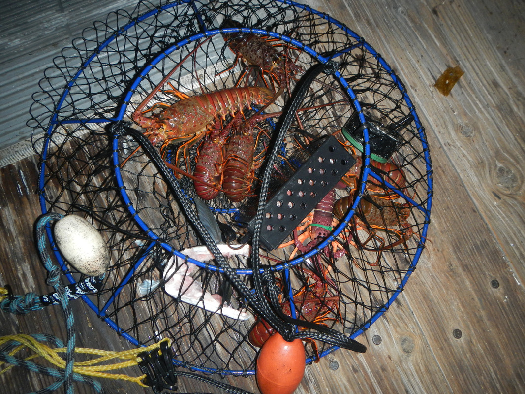 I had a successful trip and good time during the lobster season opener. While waiting for the 6:30 PM starting time, a local restaurant employee generously and for free gave me a lot of bait to use. 1 - The head of a very large yellowtail and bucket full of discarded meat. ![]() I cut the head in half and zip-tied them to each net. Too big to stuff them in the bait box. Besides, I had a lot of meat to put in the bait boxes. I also used squid in two smaller bait boxes. 2 ? It was great to pull the net and see all the bugs in it. ![]() ![]() 3 ? I kept five legal lobsters and released (without counting) perhaps 30 plus short ones. ![]() Hope you had a successful trip, if you went out. |